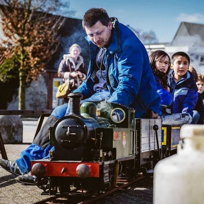 Wat een aantrekkingskracht heeft deze gezellige Stoomtrein! Een succes om te huren voor ieder Dorpsfeest, Braderie of Evenement. Deze trein die plek biedt aan 12 personen van 1 tot en met 99 jaar. De baan is ongeveer 92.5 meter lange rechte rails of een ronde baan met een minimum van 25 meter rond De rails kan op harde ondergrond en op kort gras geplaatst worden. De plaats dient wel vlak te zijn .Voor op- en afbouwen is het nodig dat er een auto met aanhangwagen bij de plek kan komen waar de baan komt te liggen.